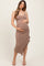 Taupe Ruched Ruffle Detail Sleeveless Maternity Midi Dress