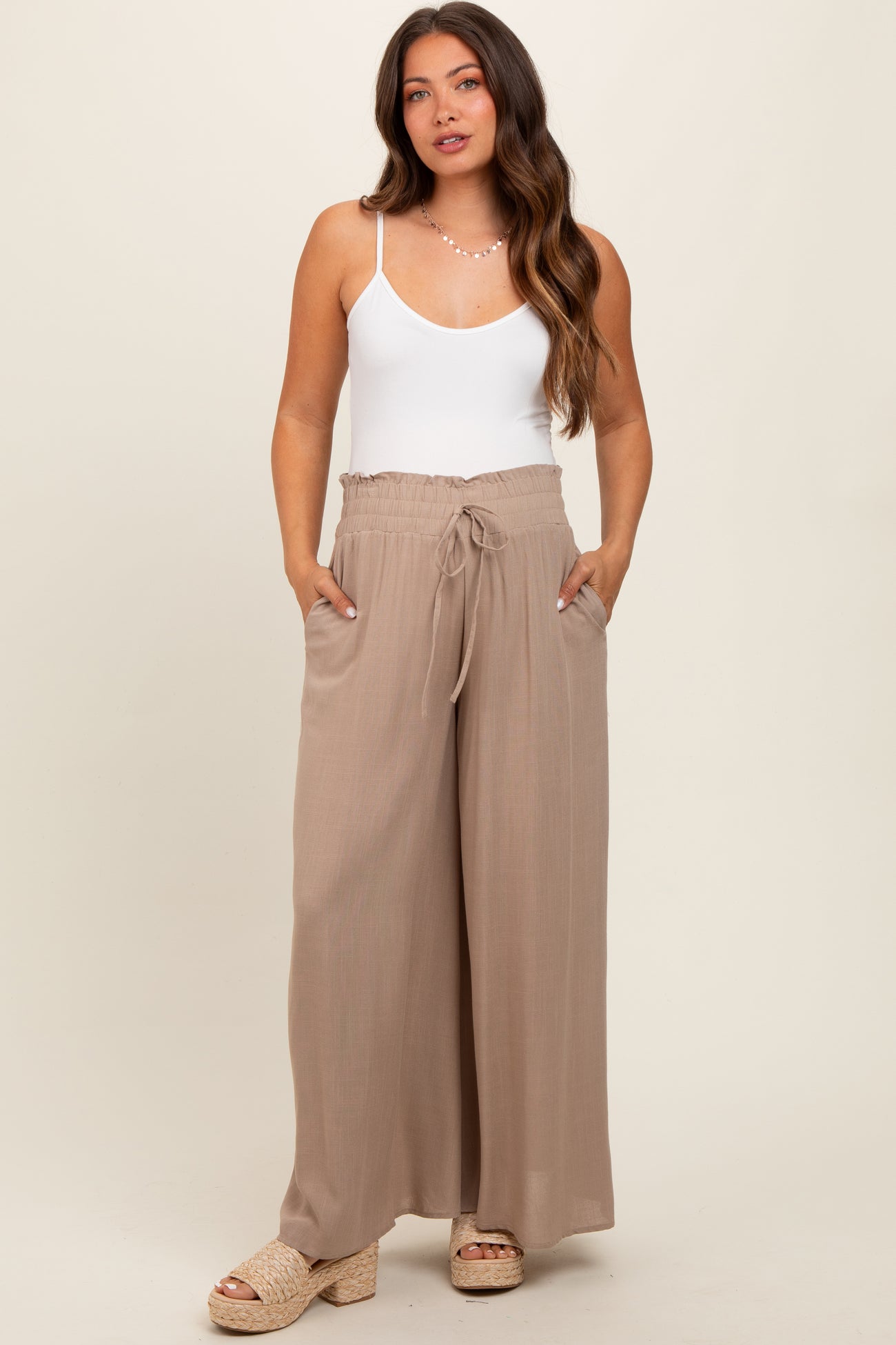 Taupe Wide Leg Smocked Lightweight Maternity Pants
