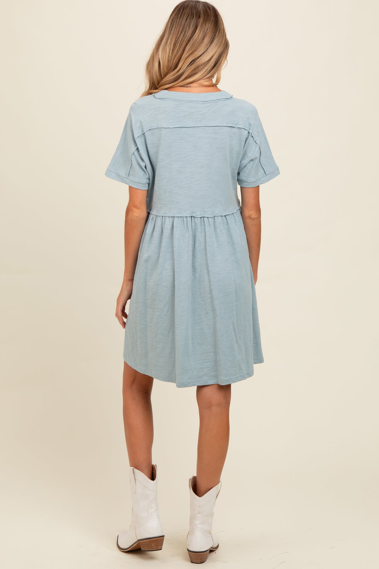 Teal Button Accent Cut Hem Detail Maternity Dress