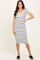 White Striped Ribbed Henley Fitted Midi Dress