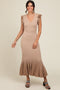 Beige Knit Colorblock Stripe Sleeveless Polo Dress