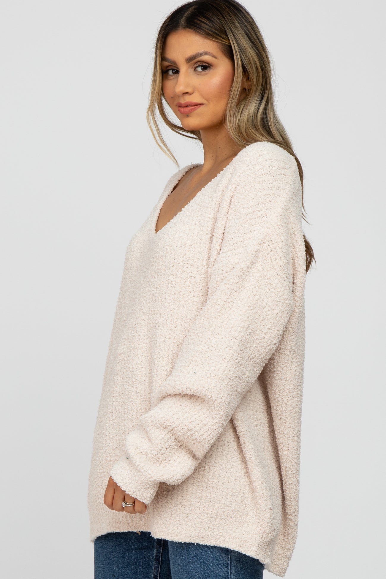 An ultra soft knit sweater featuring a v-neckline and long sleeves.