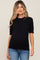 A knit blouse with ribbed detailing around neckline and hemlines. Fitted.