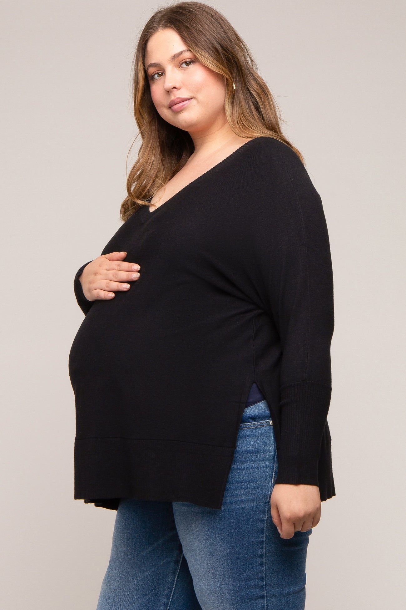 Black Knit Long Dolman Sleeve Plus Maternity Top
