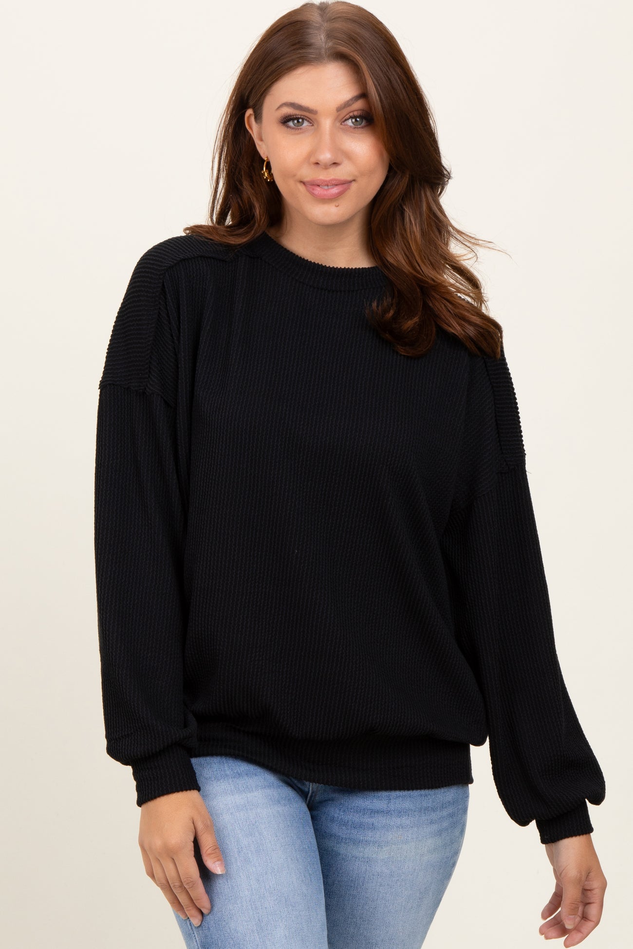 Black Oversized Ribbed Long Sleeve Maternity Sweatshirt
