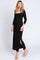 Details A ribbed midi dress that includes a squared neckline, long sleeve, and a side slit. Content + Care