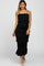 Black Satin Smocked Fitted Midi Dress