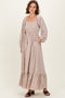 Elevate your maternity wardrobe with this satin smocked pleated midi dress, designed for both comfort and style throughout your pregnancy. The smocked bodice offers a flexible fit that adapts beautifully to your growing bump, while the flowing pleated skirt creates an effortlessly elegant silhouette. Featuring long, voluminous sleeves with gathered cuffs, this dress adds a touch of sophistication perfect for special occasions or everyday wear. The V-neckline enhances femininity and pairs beautifully with your favorite accessories. Crafted from soft, breathable fabric, it ensures all-day comfort without compromising on chic. Embrace your maternity glow in this timeless piece made to flatter every stage.