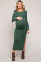 A sleeveless ribbed maternity bodysuit. Fitted. Rounded neckline.