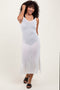 A ribbed sleeveless midi dress featuring a side slit, a racerback and a rounded neckline.