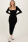 Black Square Neck Rib Long Sleeve Maxi Dress