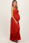 A maternity dress featuring a v-neckline, lace knit bust, adjustable straps and a striped knit A-line skirt.