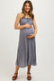 Blue Floral Button Down Front Slit Maternity Maxi Dress