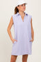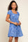 A floral dress featuring short puff sleeves, side pockets and a rounded neckline.