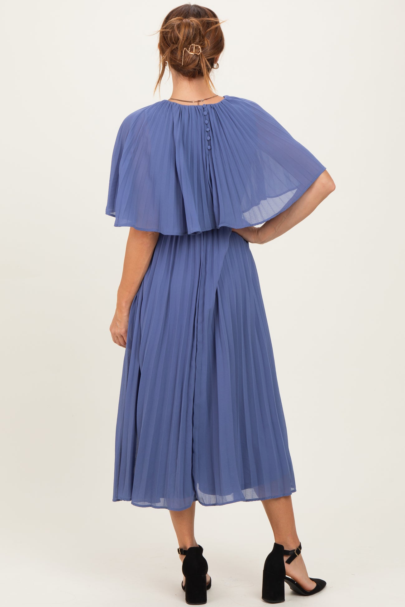 Blue Pleated Cape Midi Dress