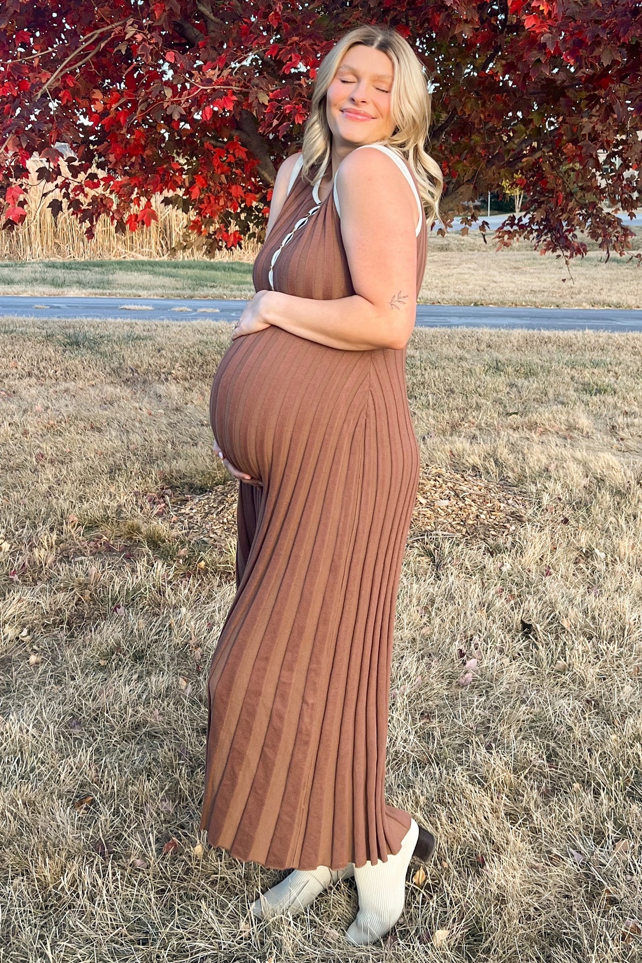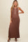 Brown Ribbed Knit Button Detail Sleeveless Maternity Maxi Dress