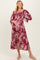 Burgundy Floral Smocked 3/4 Sleeve Maternity Midi Dress