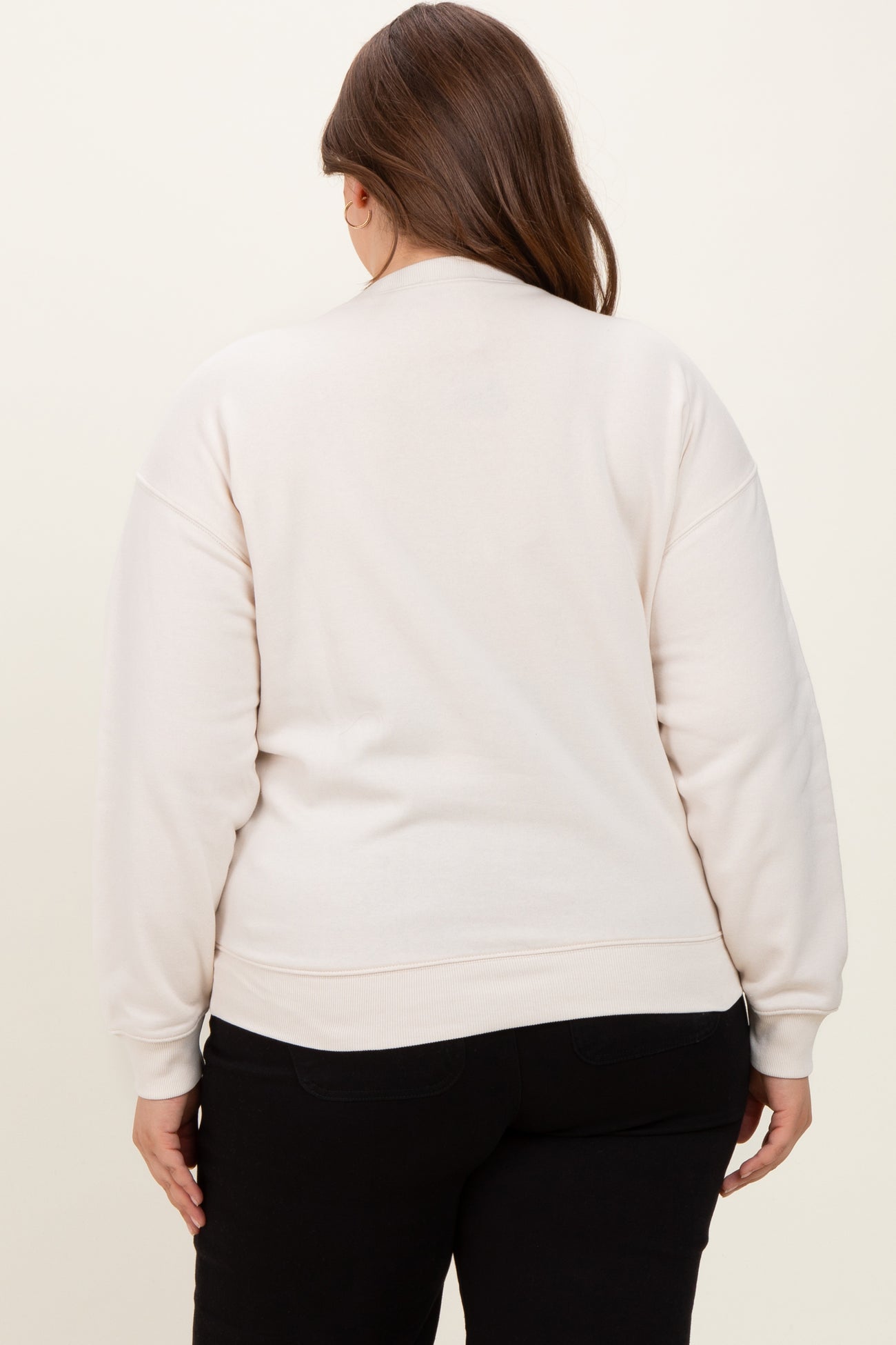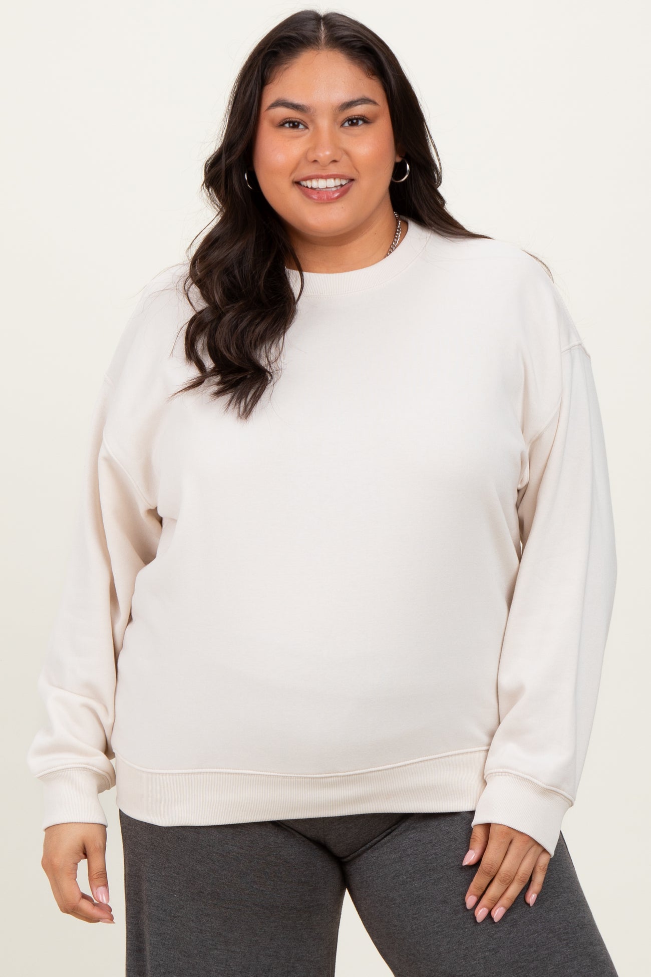 Cream Basic Fleece Crewneck Maternity Sweatshirt