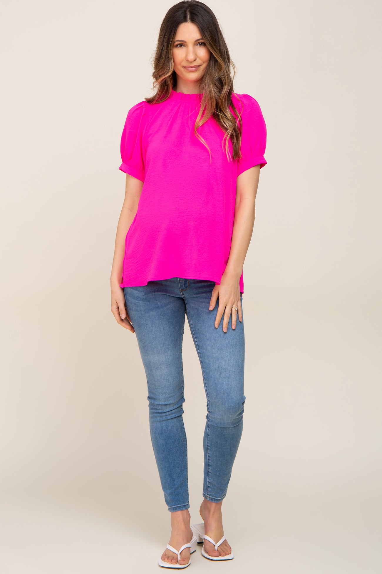 Fuchsia Ruffle Mock Neck Maternity Blouse Top