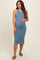 Light Blue Acid Wash Ribbed Sleeveless Maternity Midi Dress