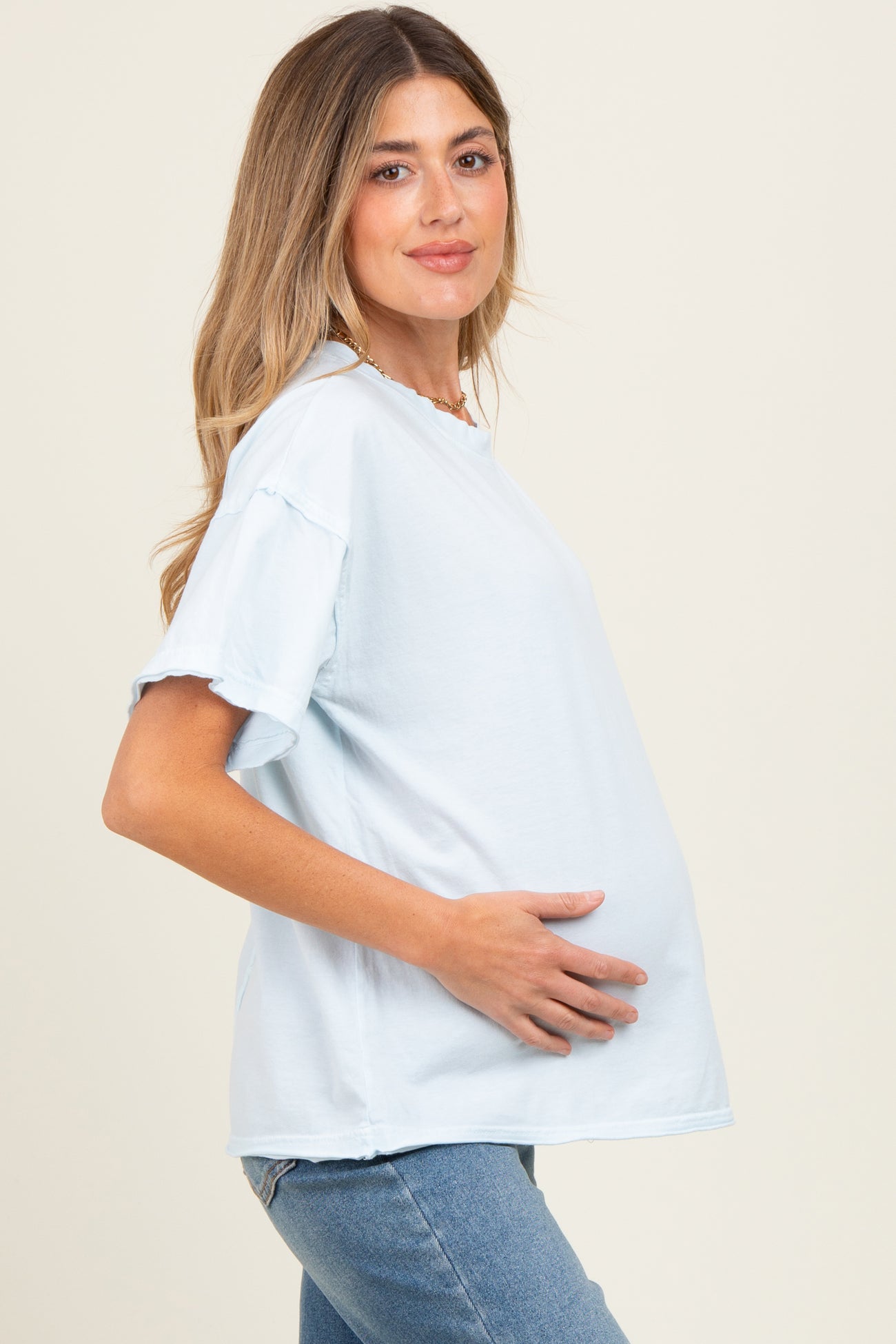 Light Blue Boxy Raw Edge Maternity Short Sleeve Tee