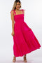 Details A solid swiss dot dress featuring a tiered body, flounce sleeves, a tie back closure, and side pockets. Content + Care