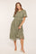 Light Olive Floral Lace Smocked Midi Dress