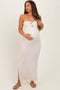 Lime Striped Ribbed Sleeveless Maternity Maxi Dress