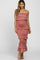 Mauve Satin Smocked Fitted Midi Dress