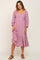 Mauve Striped 3/4 Cinched Sleeve Tiered Midi Dress