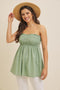 A sleeveless jumpsuit featuring a smocked bust, side pockets, and wide legs.