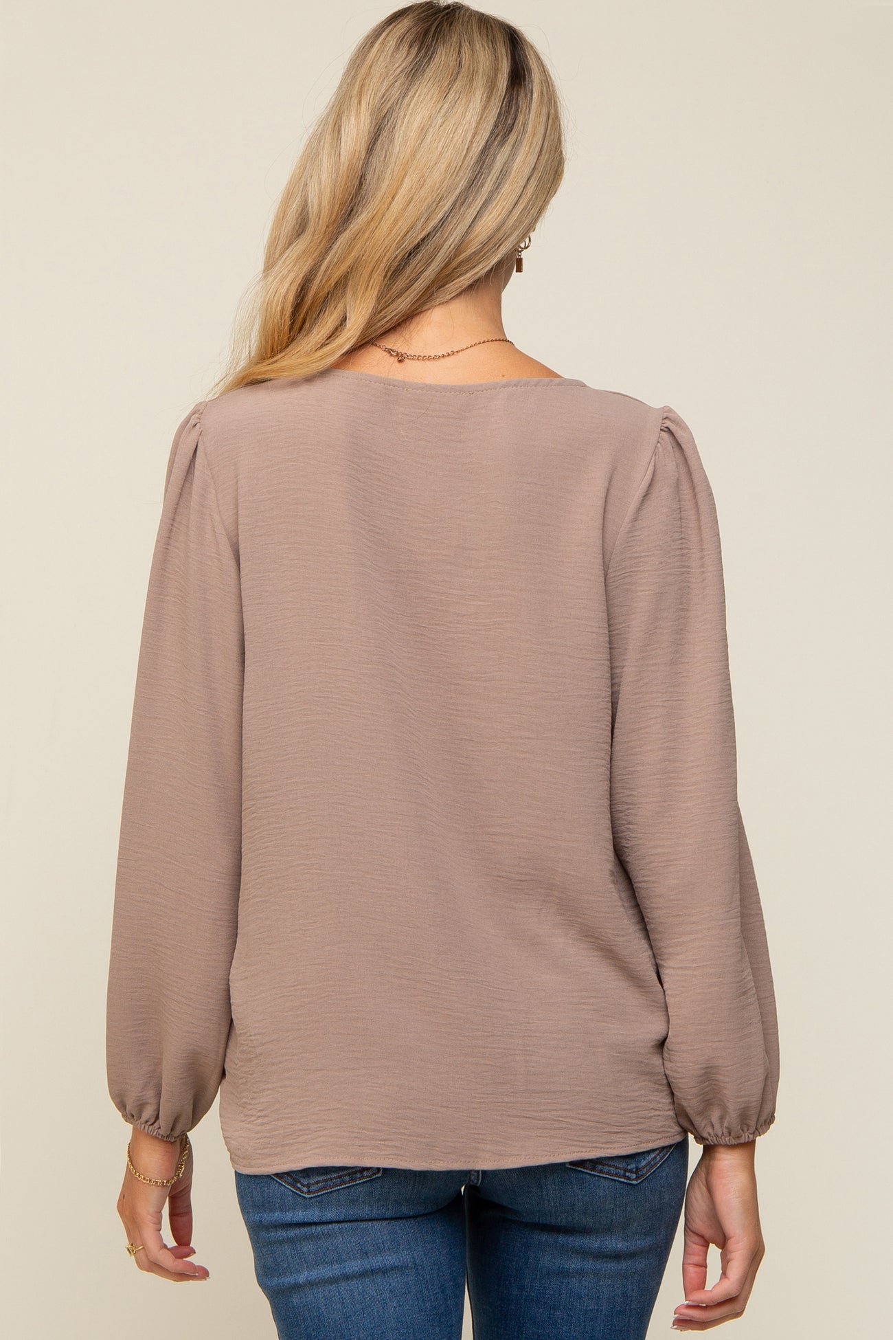 Mocha Long Puff Sleeve Maternity Blouse Top