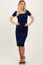 A solid hued midi dress featuring short sleeves, a belted waist and a square neckline.