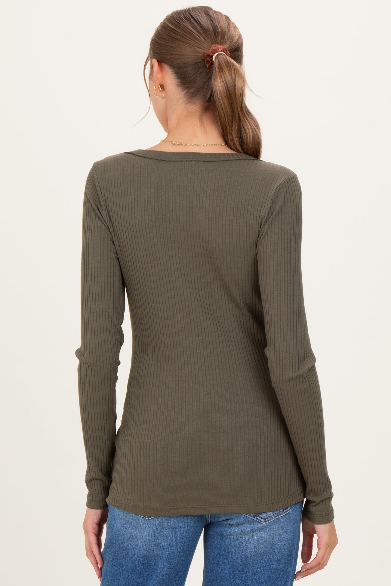 Olive Ribbed Long Sleeve Button Town Maternity Top