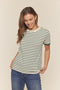 Olive Striped Split V-Neck Dolman Sleeve Top