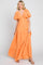 Orange Crepe Flounce Sleeve Tiered Maxi Dress