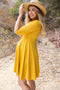 A floral dress with ruffle accents on the sleeves and hem featuring an elastic empire waist and button details.