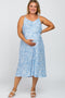 A lightweight linen maternity dress with a split v-neckline, a collar, and a tiered body.