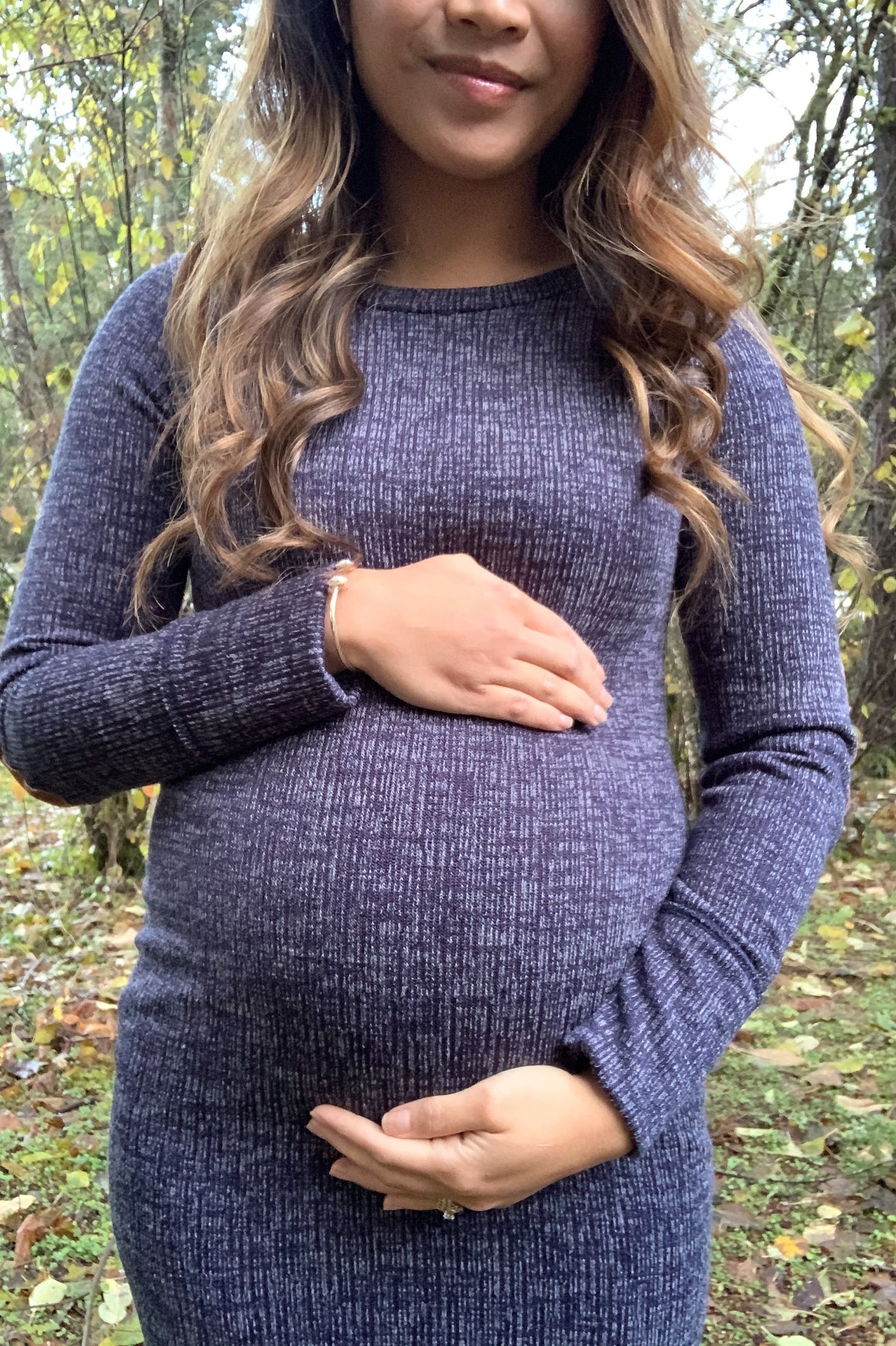 PinkBlush Heather Navy Suede Elbow Patch Sleeve Maternity Dress