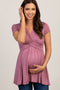 A solid hued, long sleeve tall maternity maxi dress featuring elastic cinching under the bust and on off shoulder neckline. Dress is double lined in bust to prevent sheerness.