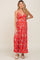 A floral maternity maxi that features adjustable straps, a v-neckline, a front twist, a smocked back, a front cutout, and a gathered bottom tier.
