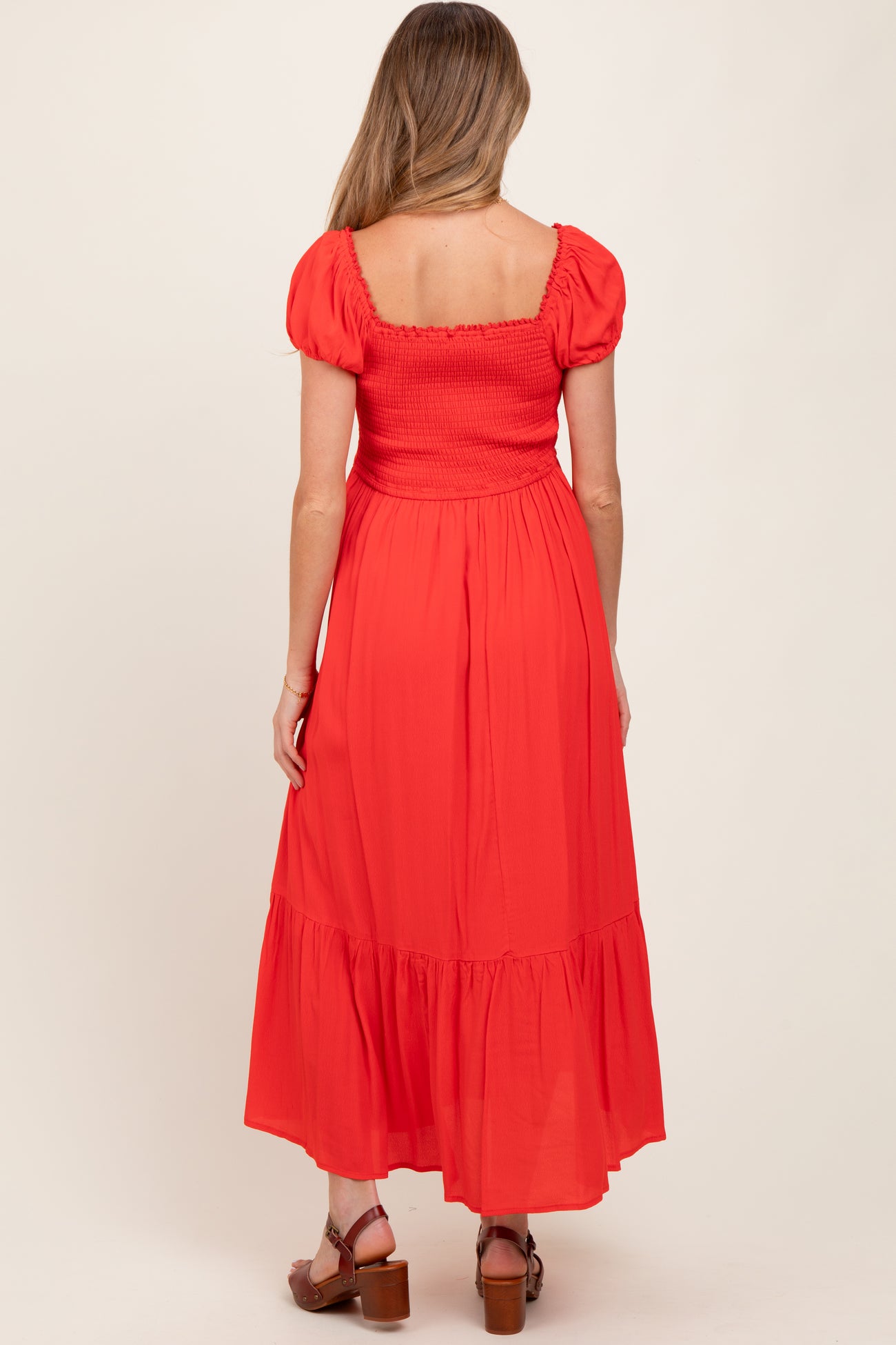 Red Ruffle Detail Square Neck Maternity Maxi Dress
