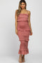Embrace effortless style and comfort with our Rust Crochet Trim Floral Maternity Maxi Dress. This flowy, tiered maxi dress features a beautiful rust floral print on a soft, breathable fabric, perfect for all stages of pregnancy. Delicate crochet trim along the neckline and adjustable shoulder ties add charming, feminine details. The empire waist gently hugs your bump for a flattering silhouette while allowing room to grow. Whether you're heading to a baby shower or a casual day out, this dress pairs perfectly with sandals for a trendy, comfortable look. Machine washable and designed with maternity in mind, it's a must-have for your pregnancy wardrobe.