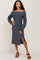 A sweater knit midi dress featuring an fold over off shoulder neckline, long sleeves, and a side slit.
