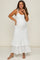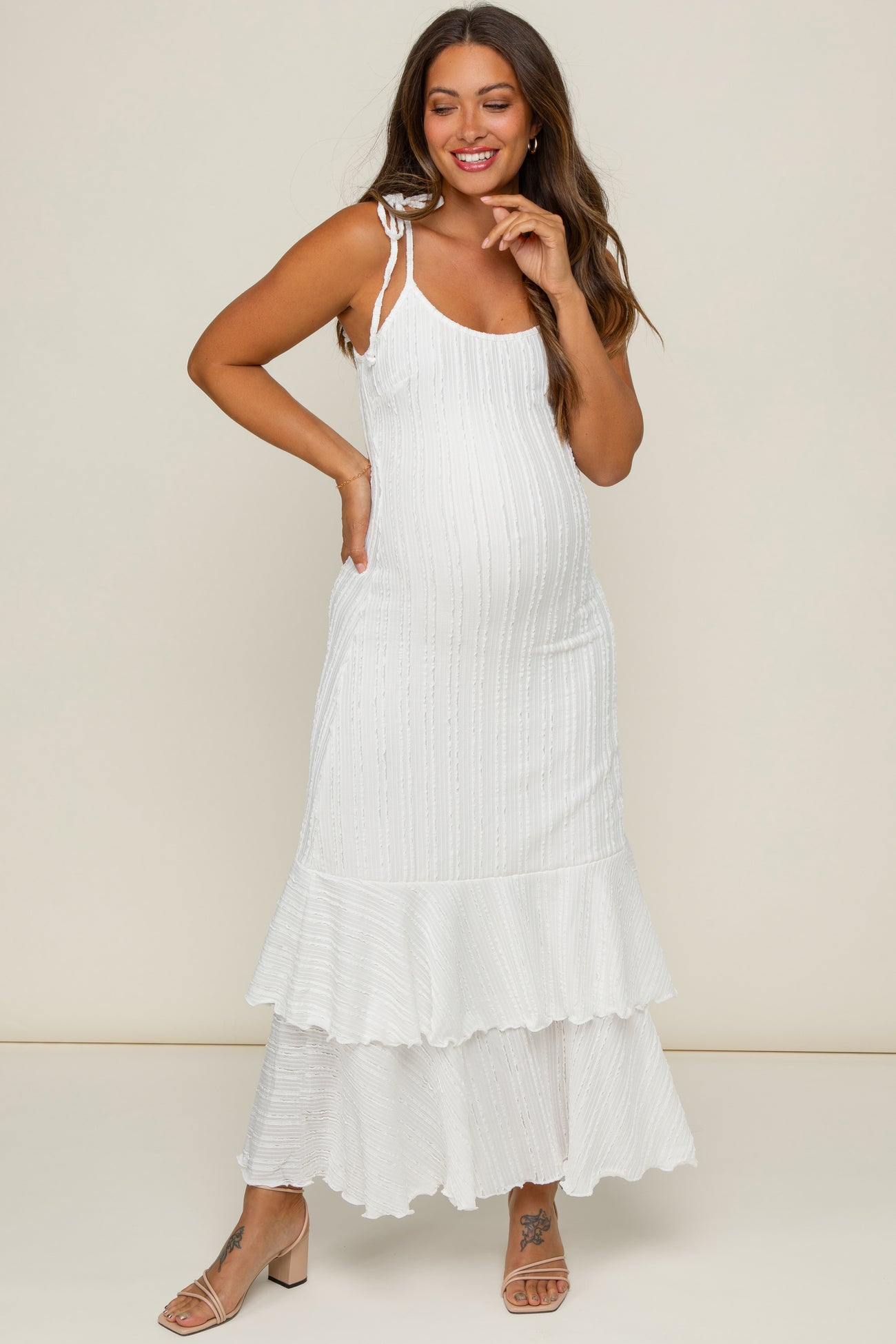White Textured Shoulder Tie Layered Hem Maternity Maxi Dress