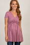 A solid fuzzy knit maternity dress featuring a fold-over turtle neckline and side slits.