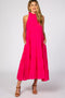 Pink Floral Sleeveless Ruffle Tiered Maternity Midi Dress