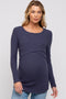 A fitted maternity top featuring front buttons, long sleeves and a v-neckline.