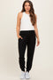 Black Ribbed Ruffle Shoulder Front Tie High Waist Two-Piece Maternity Swimsuit