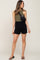 A pair of soft knit maternity lounge shorts featuring a smocked elastic waistband and a lettuce edge hem.